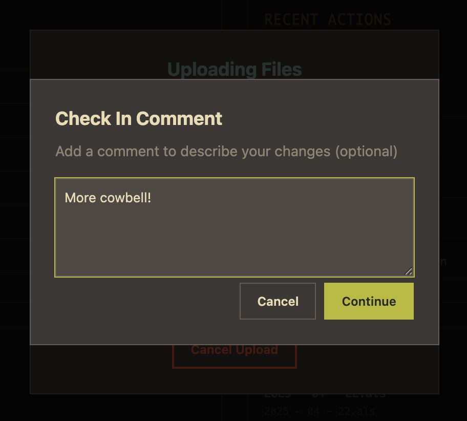 - A comment — describe what you changed so collaborators have context
